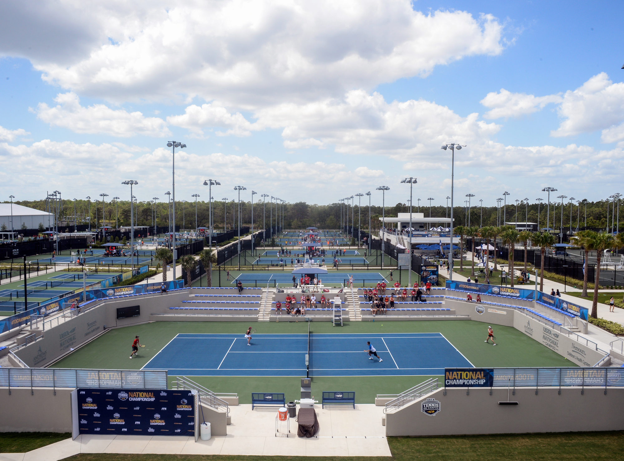 The cutting-edge center is located on 64-plus acres and features a total of 100 courts (32 Plexicusion hard courts, 32 Har-Tru green clay courts, 16 ReBound Ace short courts, eight DecoTurf acrylic cushion courts, six European Terre Davis red clay and six ReBound Ace indoor courts) along with two stadium courts.